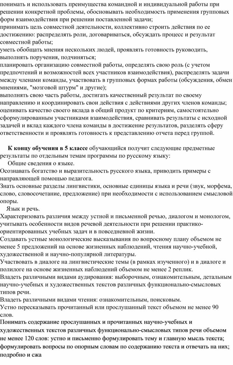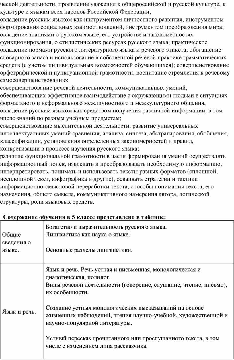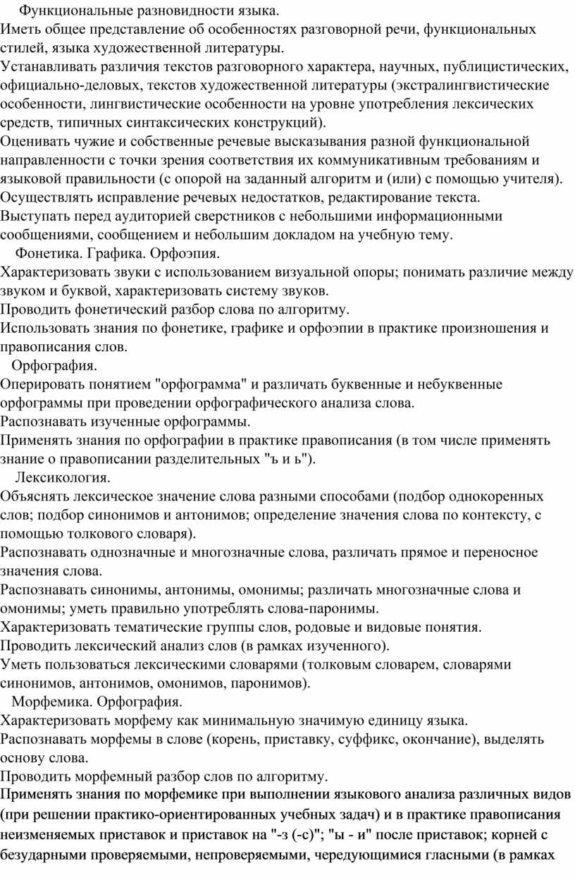 учебного предмета «Русский язык»
