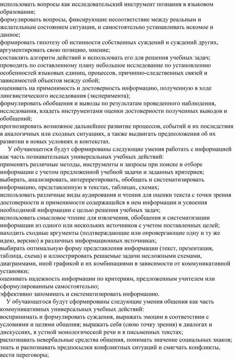 освоением в ходе изучения учебных предметов умений, специфических для данной предметной области, видов деятельности по получению нового знания в рамках учебного предмета, его преобразованию и применению в учебных, учебно-проектных и социально-проектных ситуациях;