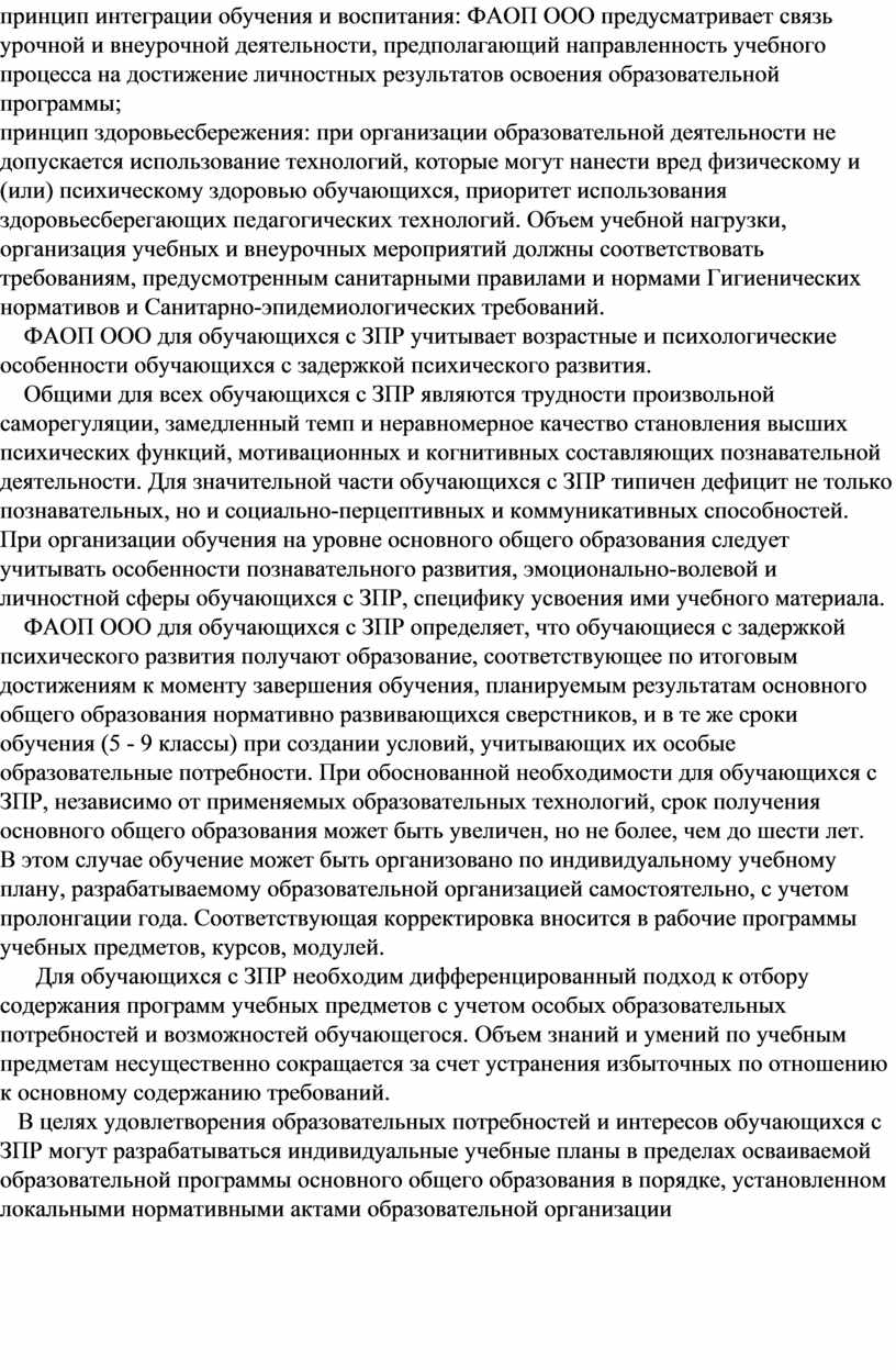 ФАОП ООО для обучающихся с ЗПР учитывает следующие принципы и подходы: