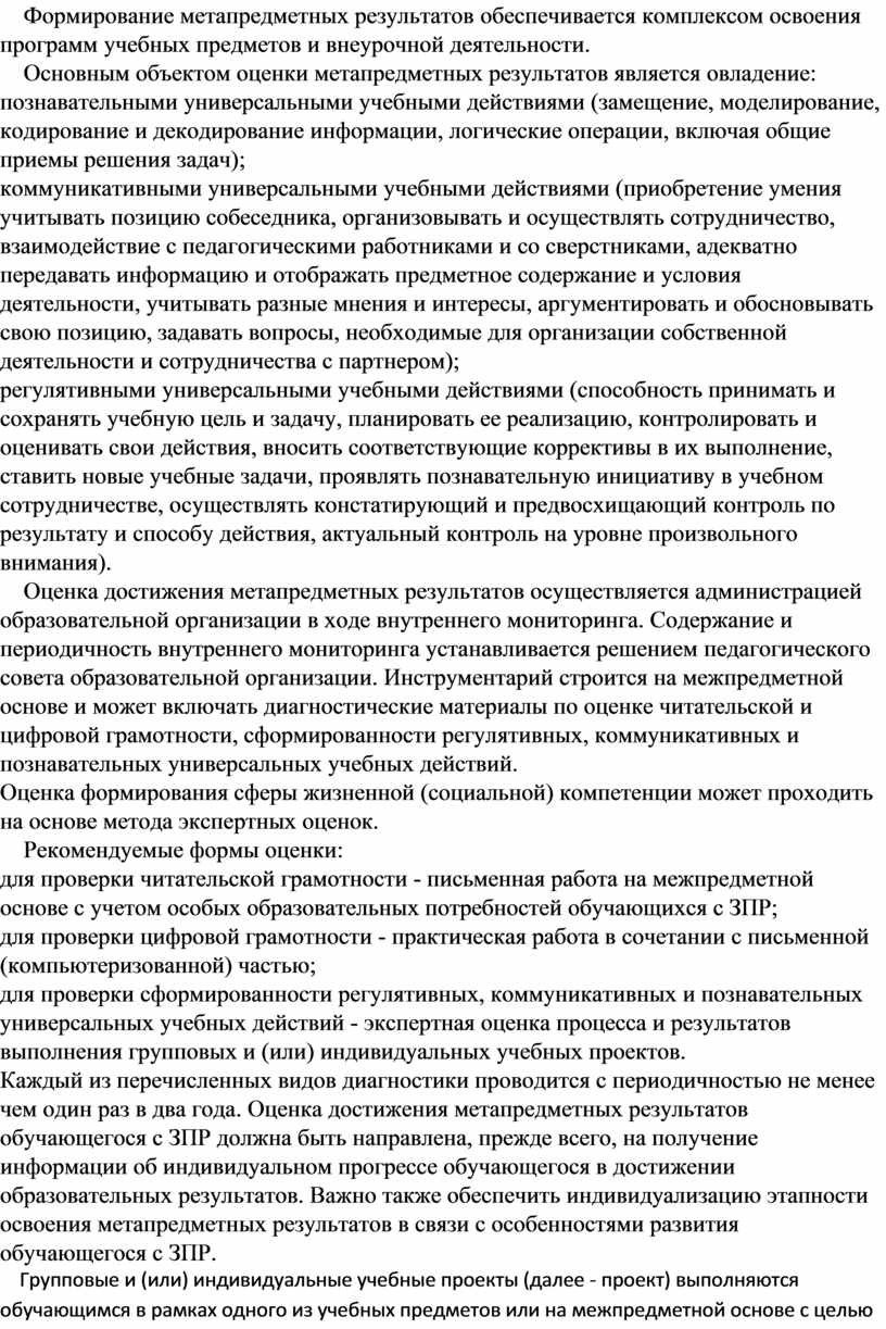 При проектировании планируемых предметных результатов по отдельным предметам необходимо учитывать особые образовательные потребности и возможности обучающихся с ЗПР.