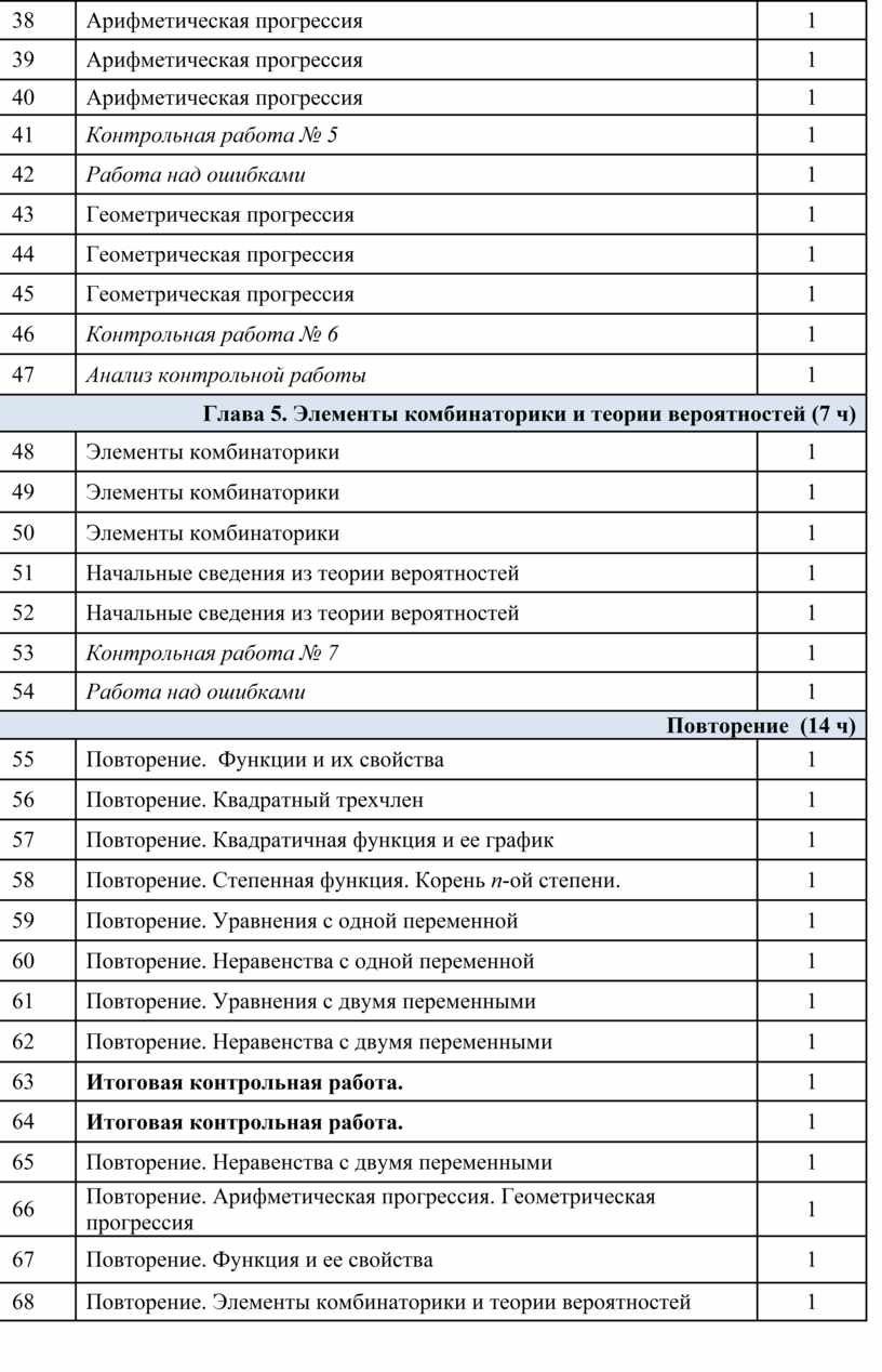 Глава 4. Арифметическая и геометрическая прогрессии (10 ч) |