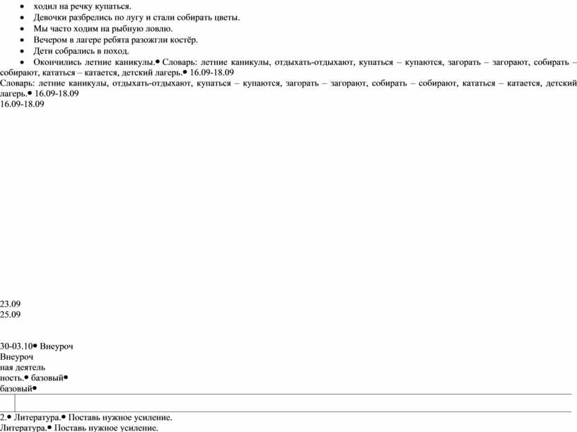 Тема «Каникулы». · Скажи, где ты отдыхал(а) летом? · Чем ты занималась в летние каникулы? · Ты ходил(а) в лес? · Ты любишь собирать грибы? · Какие грибы тебе нравятся больше всего? · Почему? · Как ты провела летние каникулы? Послушай и повтори предложения. · Летом я с товарищем каждый день ходил на речку купаться. · Девочки разбрелись по лугу и стали собирать цветы. · Мы часто ходим на рыбную ловлю. · Вечером в лагере ребята разожгли костёр. · Дети собрались в поход. · Окончились летние каникулы. |