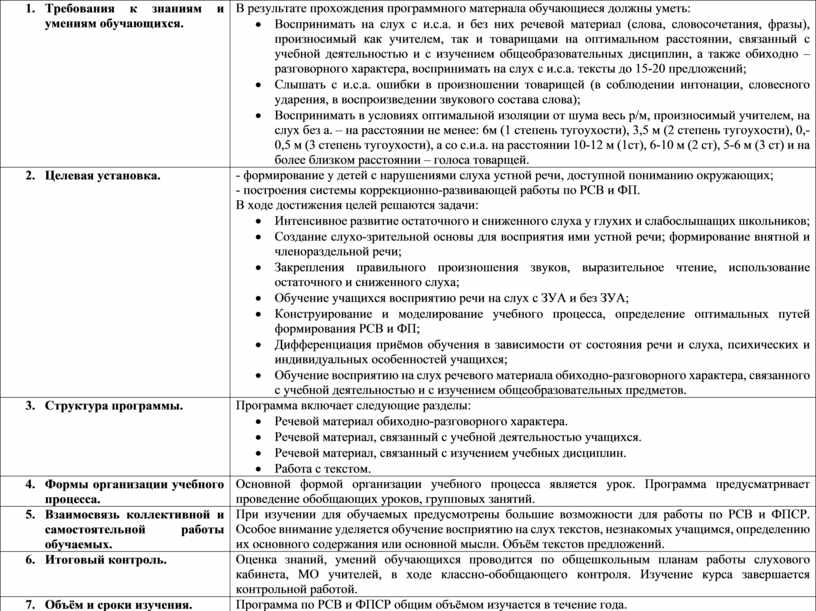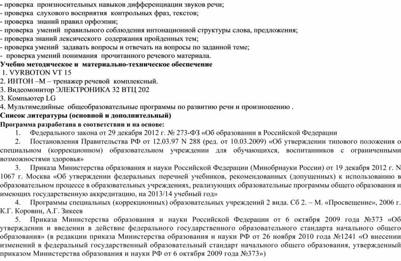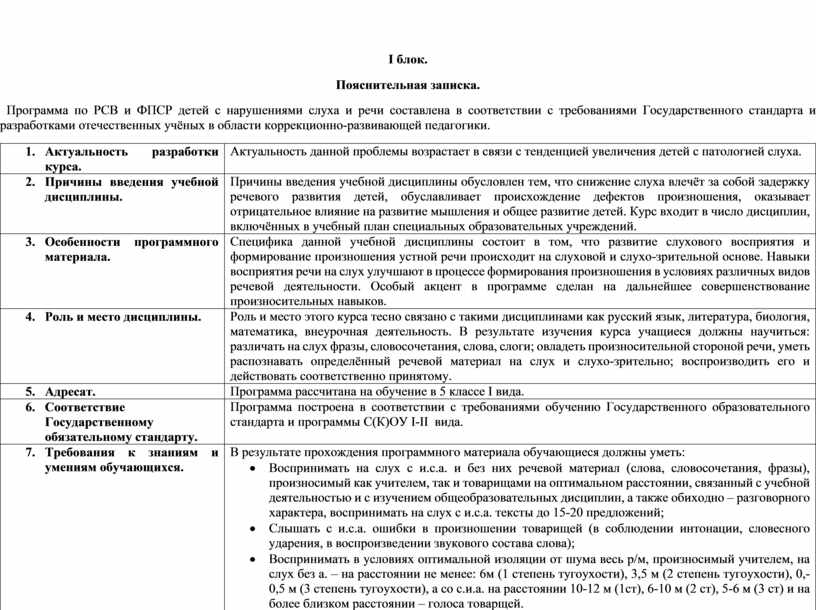 Программа по РСВ и ФПСР детей с нарушениями слуха и речи составлена в соответствии с требованиями Государственного стандарта и разработками отечественных учёных в области коррекционно-развивающей педагогики.
