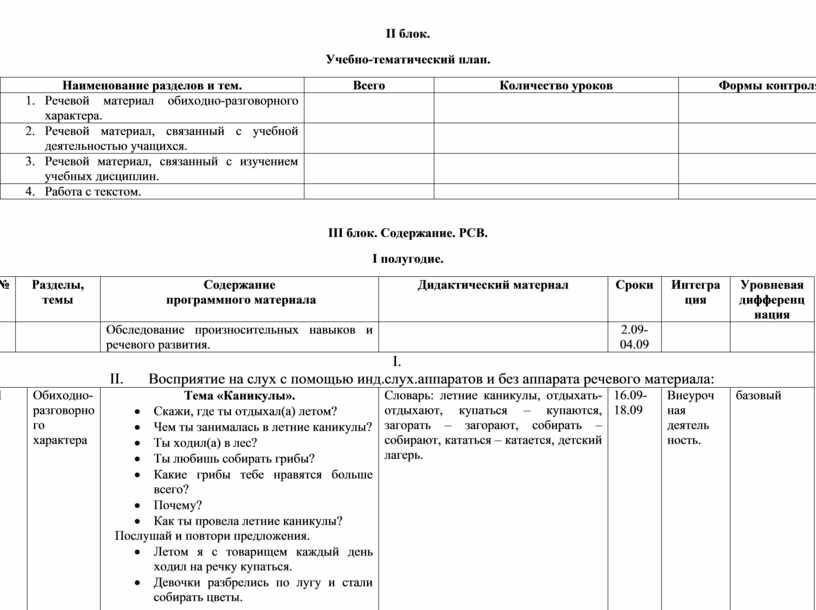 При изучении для обучаемых предусмотрены большие возможности для работы по РСВ и ФПСР. Особое внимание уделяется обучение восприятию на слух текстов, незнакомых учащимся, определению их основного содержания или основной мысли. Объём текстов предложений. |