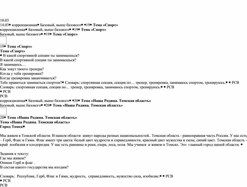 Программа по РСВ и ФПСР общим объёмом изучается в течение года. |