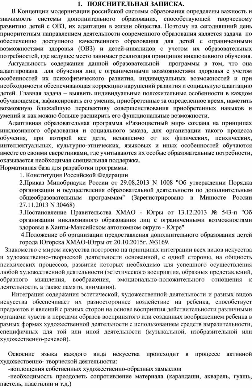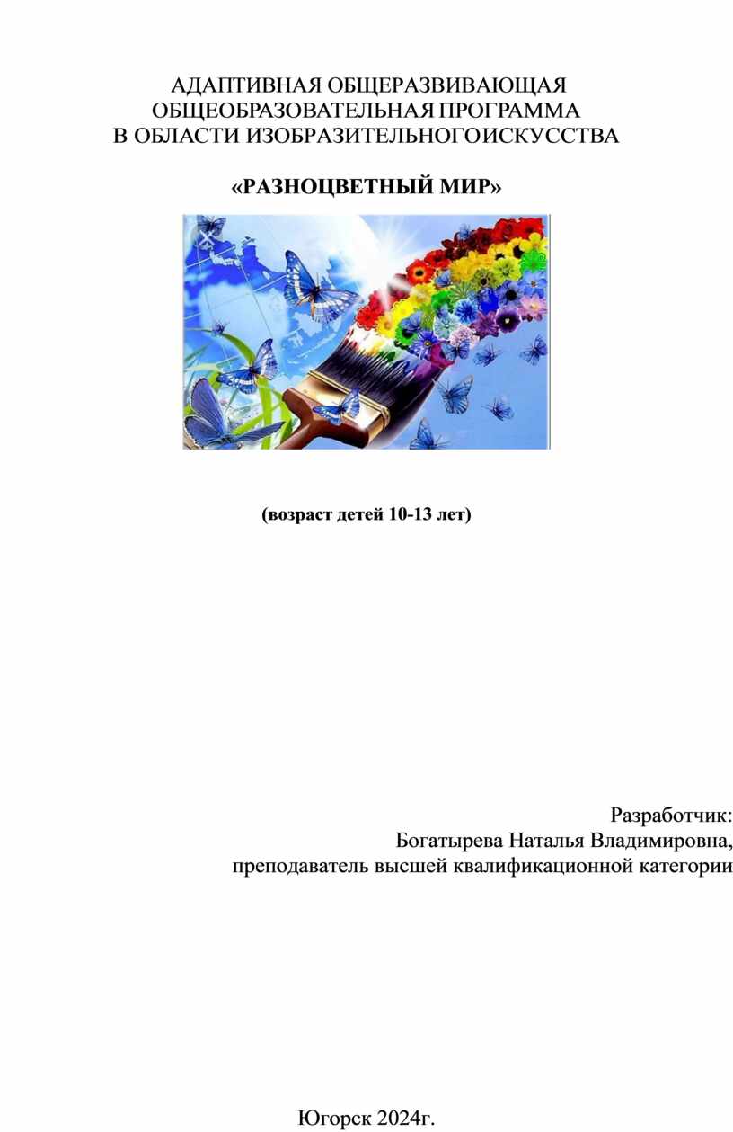 Адаптивная образовательная программа «Разноцветный мир» создана на принципах инклюзивного образования и социального заказа, для организации такого процесса обучения, при которой все дети, независимо от их физических, психических, интеллектуальных, культурно-этнических, языковых и иных особенностей обучаются вместе со своими сверстниками, где учитываются их особые образовательные потребности, оказывается необходимая специальная поддержка.