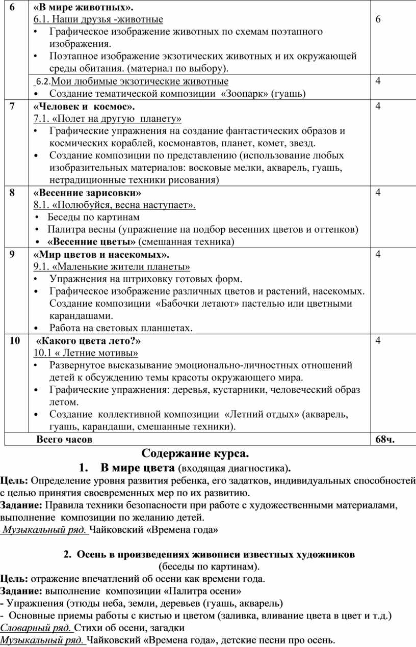 Знакомство с миром искусства построено на принципах интеграции всех видов искусства и художественно-творческой деятельности основанной, с одной стороны, на общность психических процессов, развитие которых необходимо для успешного осуществления любой художественной деятельности (эстетического восприятия, образных представлений, образного мышления, воображения, эмоционально-положительного отношения к деятельности, а также памяти, внимания).