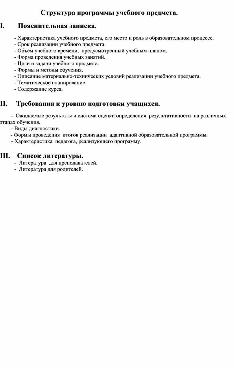- Характеристика учебного предмета, его место и роль в образовательном процессе.