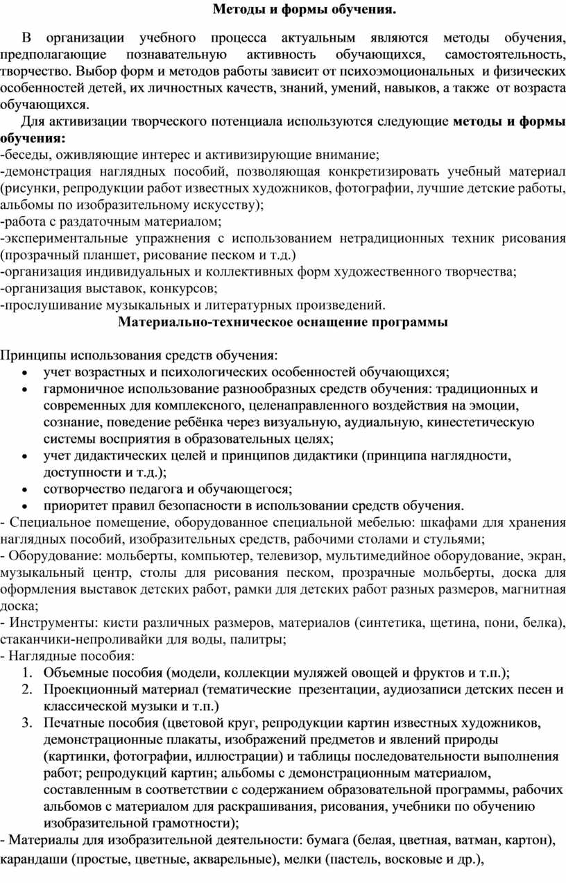 В организации учебного процесса актуальным являются методы обучения, предполагающие познавательную активность обучающихся, самостоятельность, творчество. Выбор форм и методов работы зависит от психоэмоциональных и физических особенностей детей, их личностных качеств, знаний, умений, навыков, а также от возраста обучающихся.