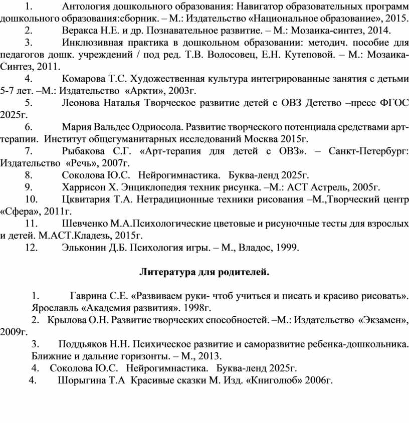 3. Антология дошкольного образования: Навигатор образовательных программ дошкольного образования:сборник. – М.: Издательство «Национальное образование», 2015.