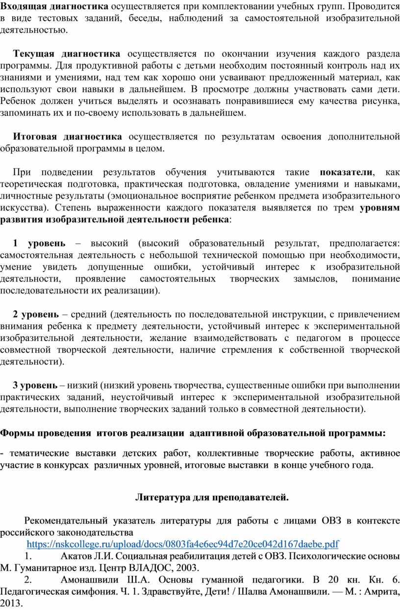 1. Акатов Л.И. Социальная реабилитация детей с ОВЗ. Психологические основы М. Гуманитарное изд. Центр ВЛАДОС, 2003.