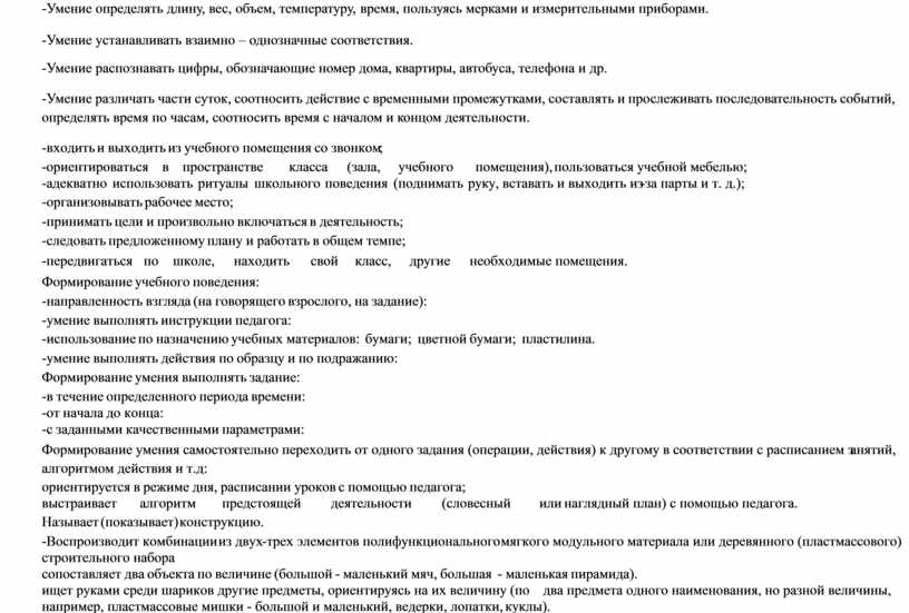 Формирование умения самостоятельно переходить от одного задания (операции, действия) к другому в соответствии с расписанием занятий, алгоритмом действия и т.д: