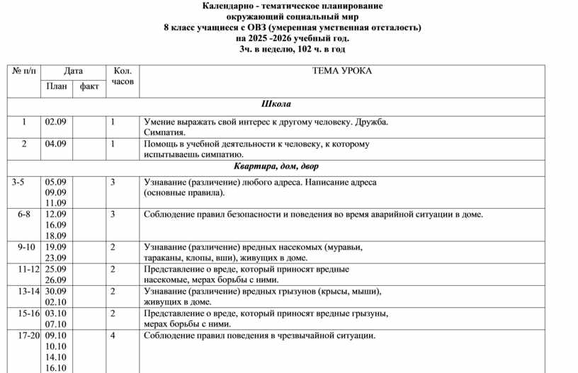 8 класс ОВЗ (умеренной и тяжелой умственной отсталостью, вариант 2).