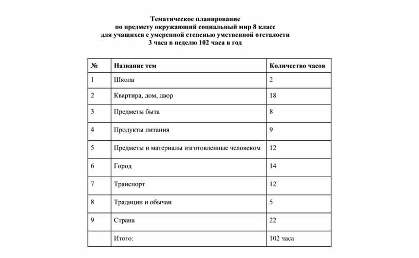 Рабочая программа адресована учащимся 8 класса (вариант 2) и предмет представлен с расчетом 3 часа в неделю, 102 часа в год.