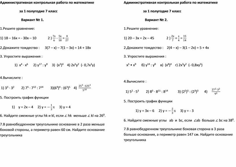 Административная контрольная работа по математике