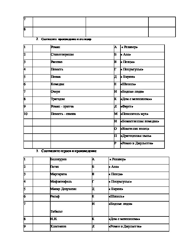 1. Назовите имя, отчество, фамилию, писателя, поэта распределив в таблице. Назовите его