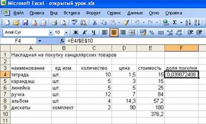 Относительная адресация ячеек – обычное явление при вычислениях по формулам. При копировании такой формулы вправо или влево будет изменяться заголовок столбца в имени ячейки, а при копировании вверх или вниз – номер строки.
