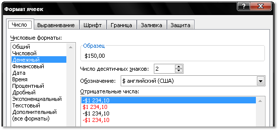1.2. В ячейке H2 установите денежный формат с обозначением $ и числом десятичных знаков – 2: