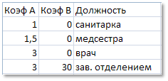Заполните столбцы «Коэф A» и «Коэф B» исходя из этих данных: