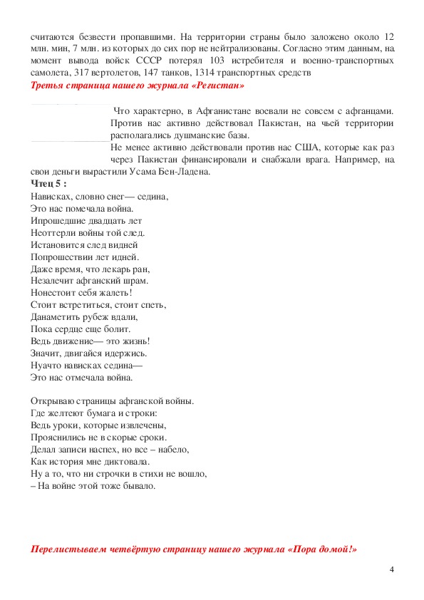 Сегодня мы перелистаем страницы устного журнала «Афганистан – наша