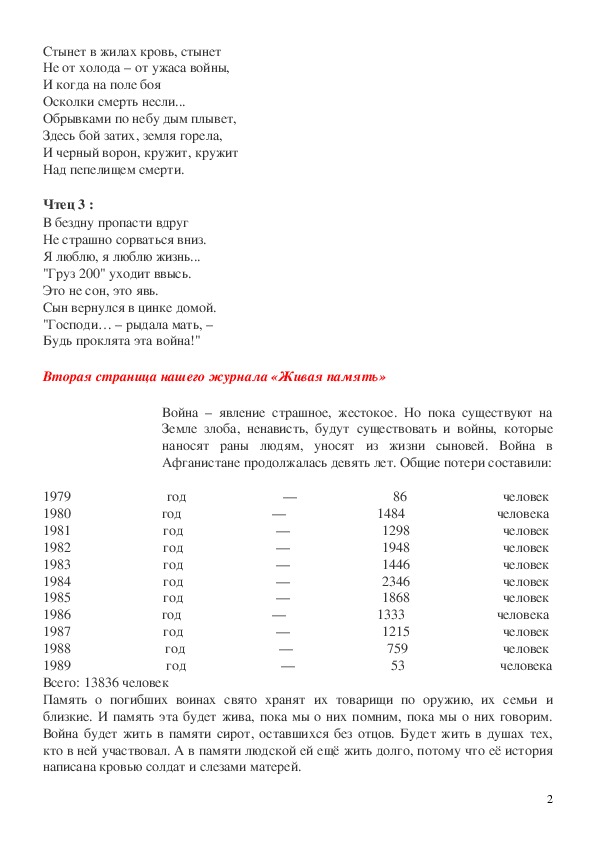 Война будет жить в памяти сирот, оставшихся без отцов. Будет жить в душах тех,