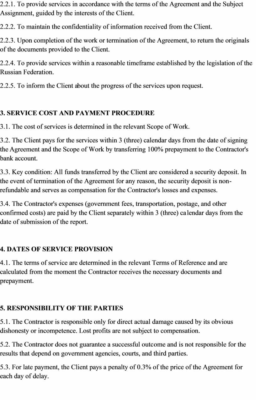 2.2.1. To provide services in accordance with the terms of the Agreement and the Subject Assignment, guided by the interests of the Client.