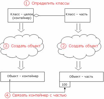 При реализации агрегации на основе классов необходимо исходить из того факта, что класс относится к ссылочным типам, т.е. имя объекта