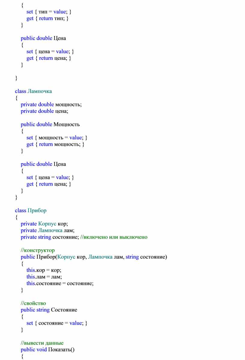 set { цена = value; } get { return цена; }