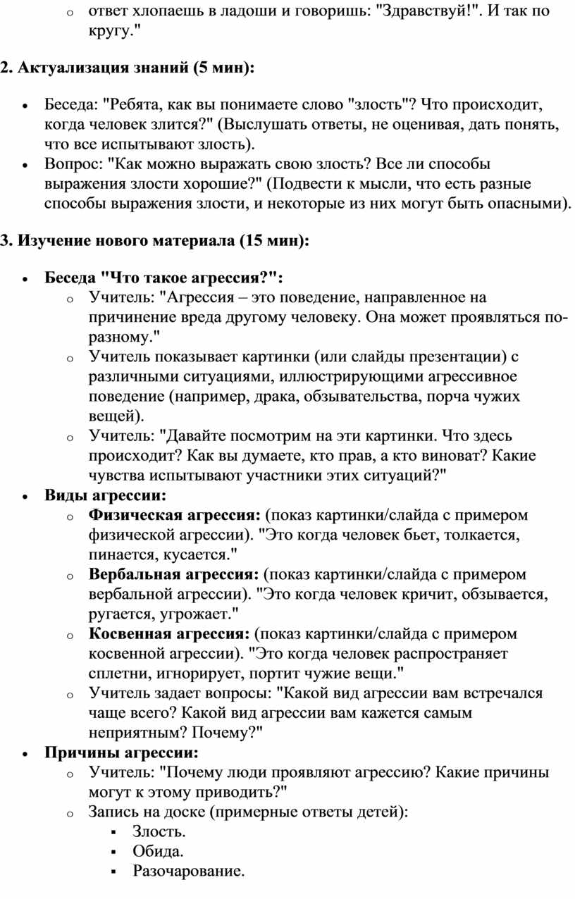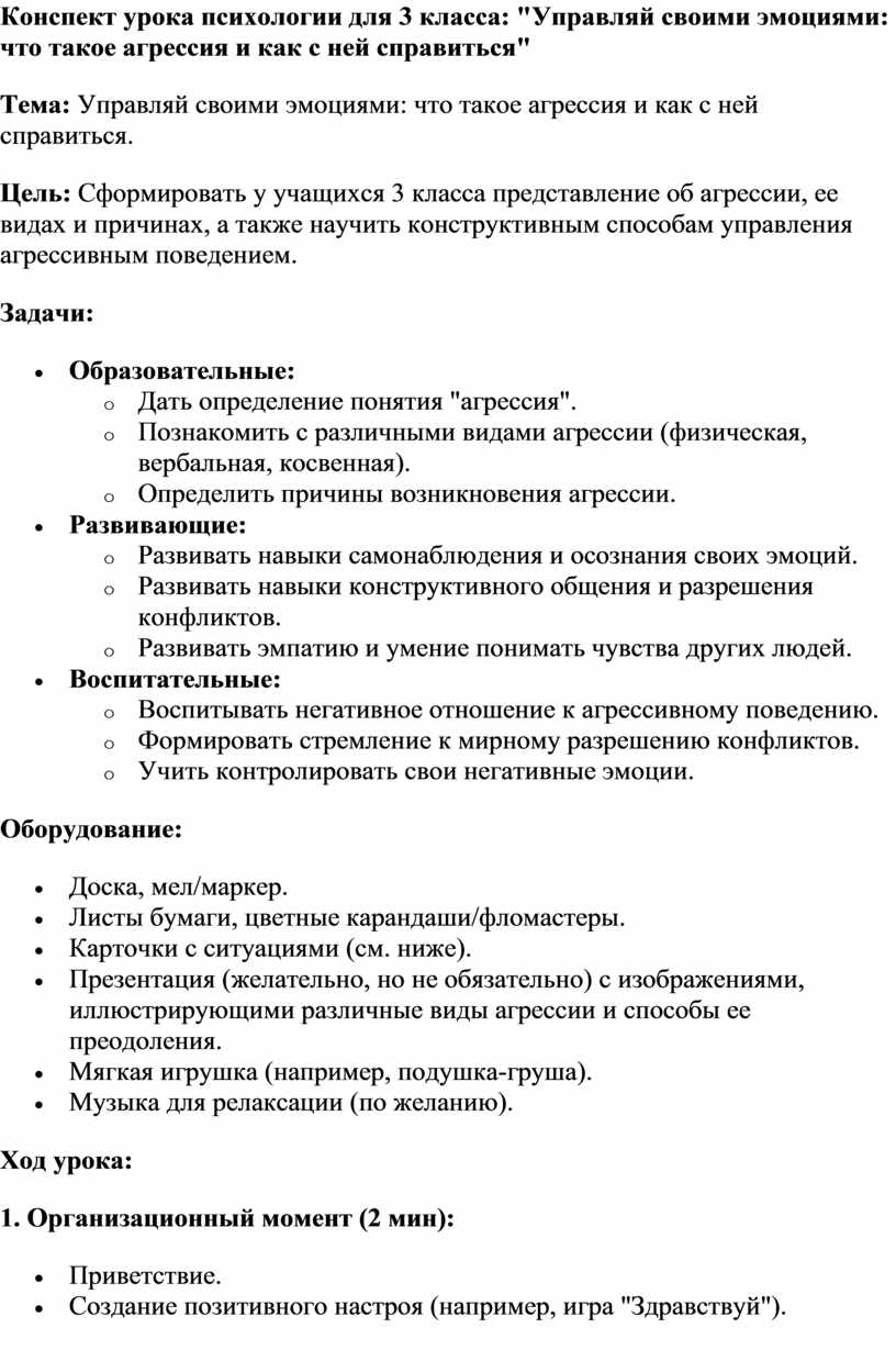 представление об агрессии, ее видах и причинах, а также научить конструктивным