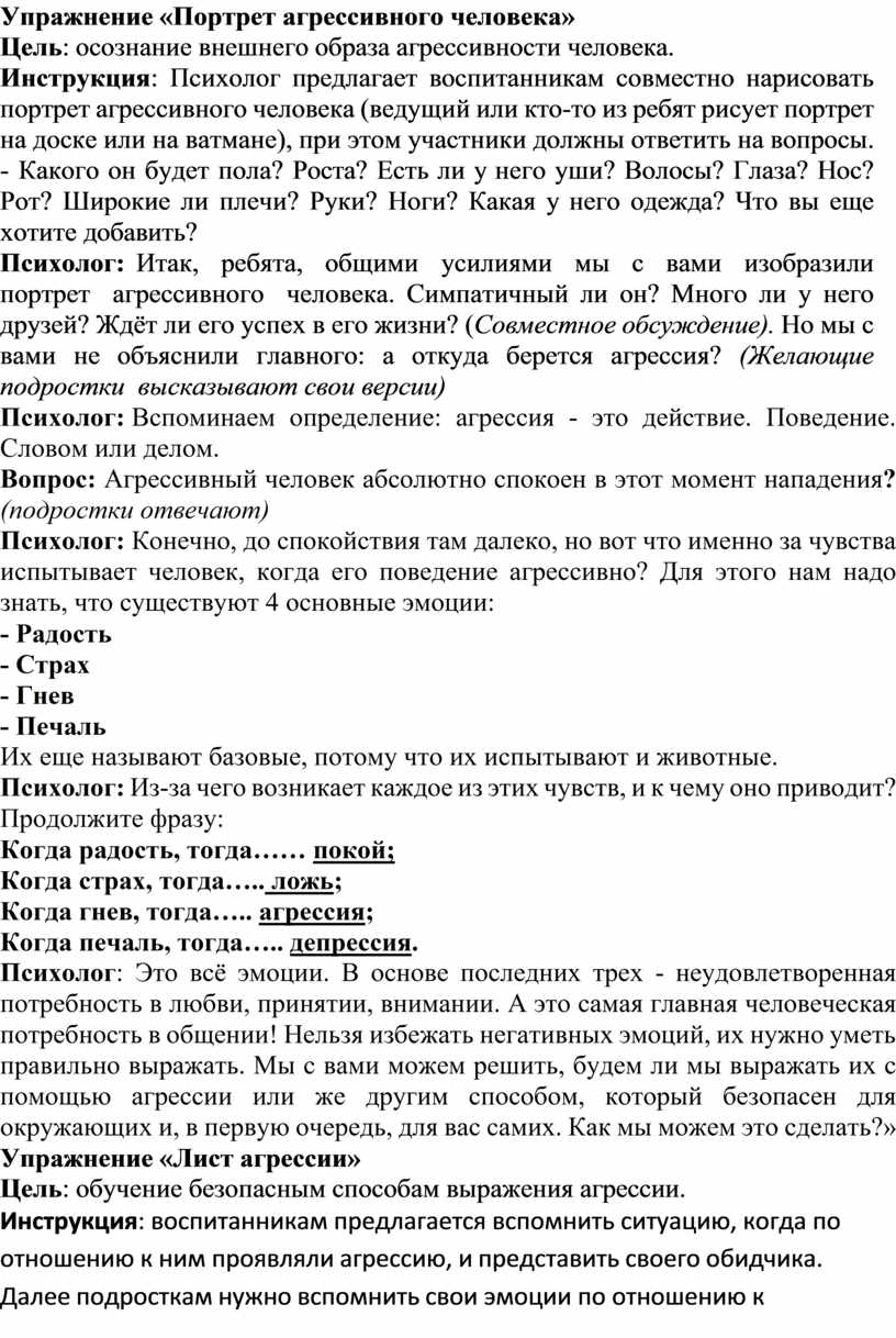 Упражнение «Портрет агрессивного человека»