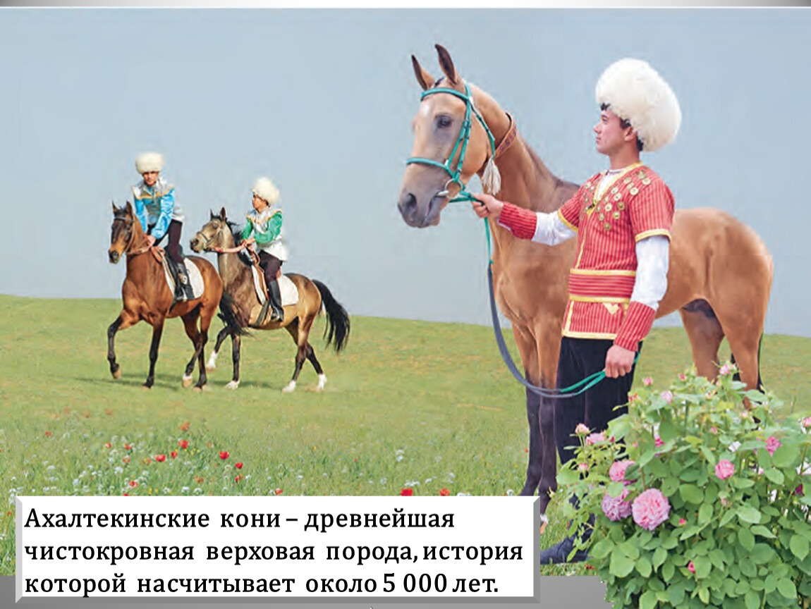 Ахалтекинцы – одна из самых больших ценностей нашей страны. Туркмены – прирождённые наездники, и страсть к коням прививается у них с детства. Испокон веков конь – равноправный член семьи, и это отношение к нему столетиями передаётся из поколения в поколение.