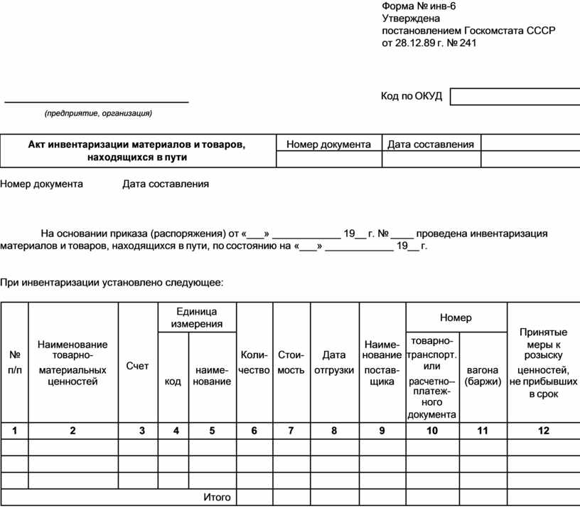 На основании приказа (распоряжения) от «___» ____________ 19__ г. № ____ проведена инвентаризация материалов и товаров, находящихся в пути, по состоянию на «___» ____________ 19__ г.