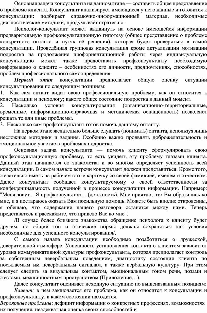 МЕТОДИКА ПРОВЕДЕНИЯ ПРОФКОНСУЛЬТАЦИИ