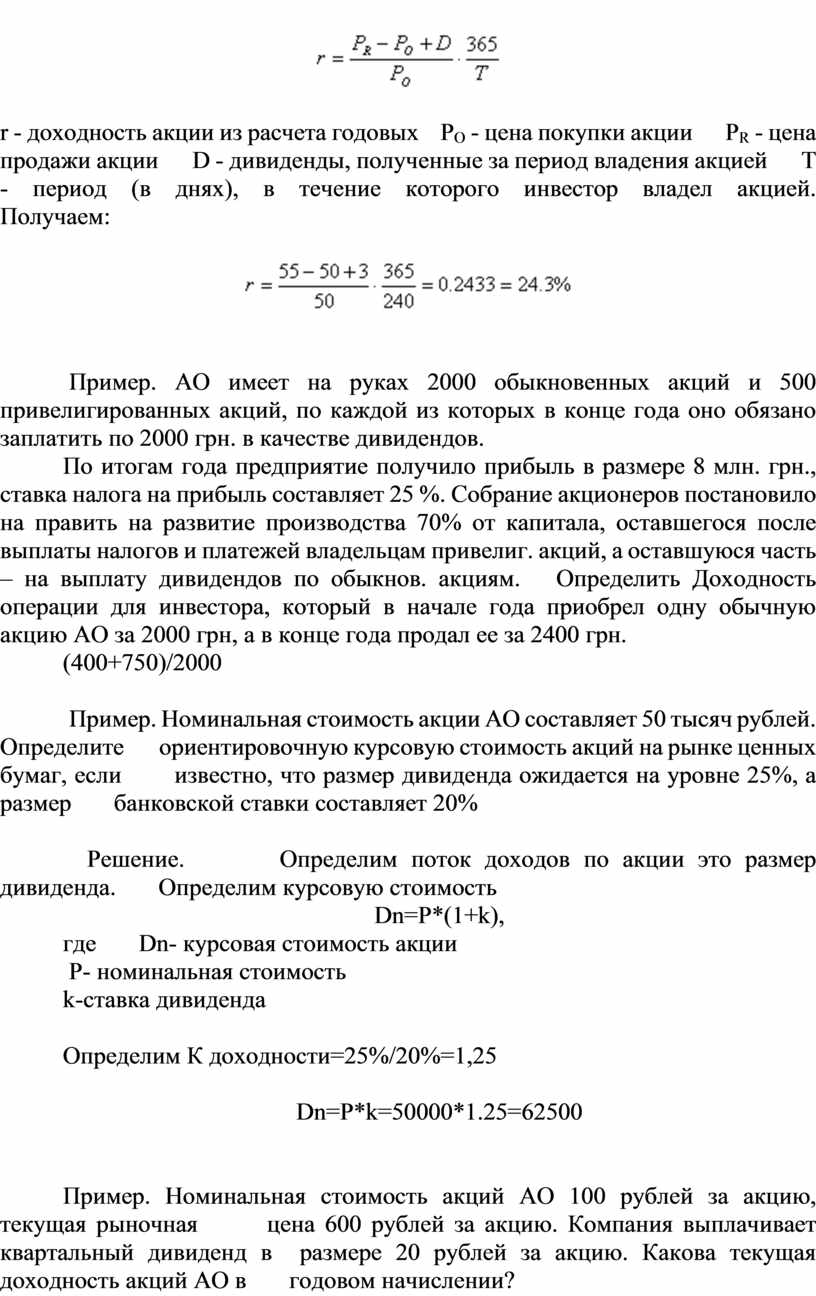 акции PR - цена продажи акции D - дивиденды, полученные за