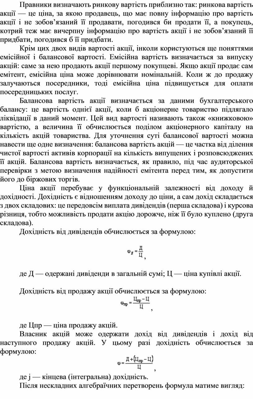 З цього рівняння випливає, що ціна акції прямо пропорційна сумі двох доходів (Д + Цпр) і обернено пропорційна дохідності (j + 1).