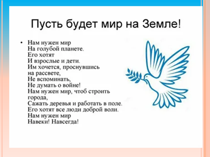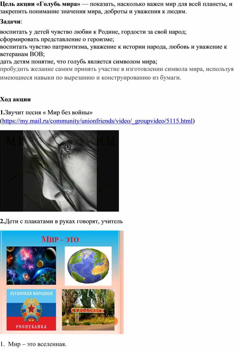 1.Звучит песня « Мир без войны» (https://my.mail.ru/community/unionfriends/video/_groupvideo/5115.html)