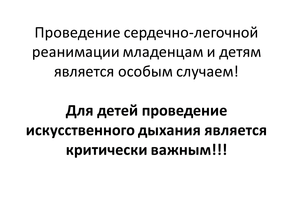 Проведение сердечно-легочной реанимации младенцам и детям является особым случаем! Для детей проведение искусственного дыхания является критически важным!!!