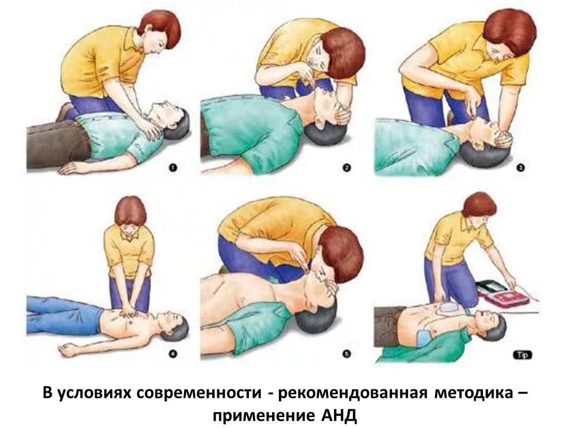 Компрессии грудной клетки необходимо сочетать с искусственными вдохами (“изо рта в рот”)