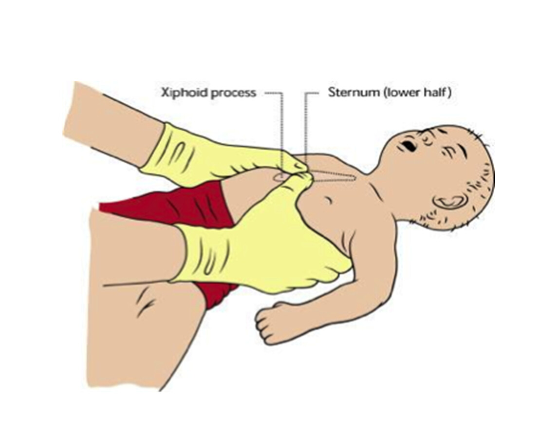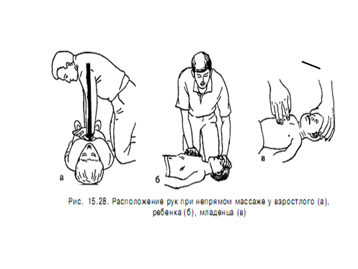• Сжимать грудную клетку не менее, чем на треть ее глубины; детям моложе года КГК выполняют 2 пальцами;детям старше года КГК выполняют 1 или2 руками — так, чтобы глубина компрессии была адекватной.