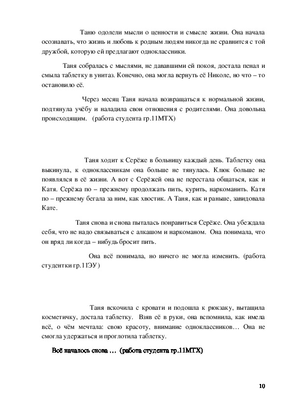 9Таню одолели мысли о ценности и смысле жизни. Она начала