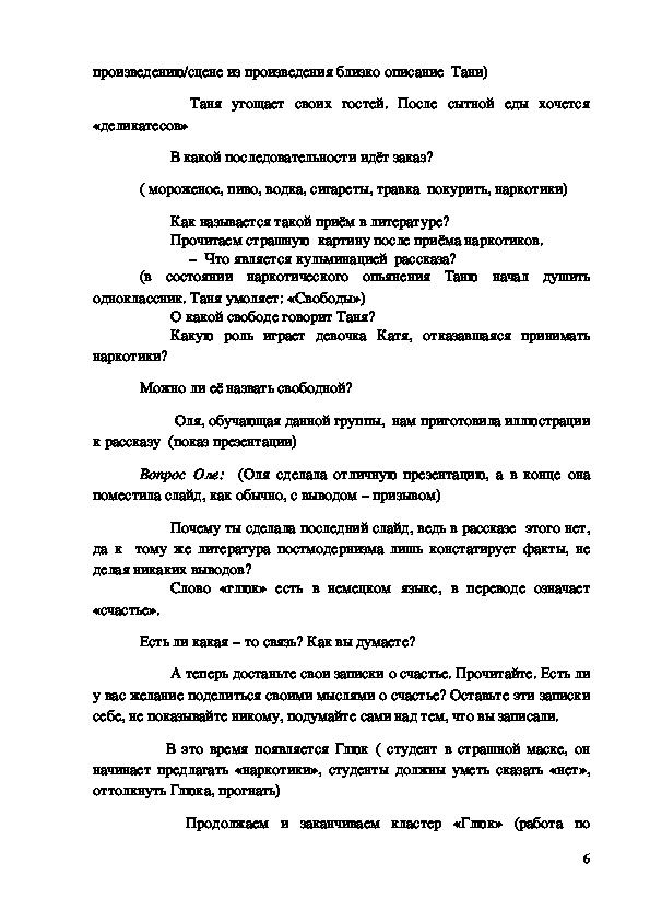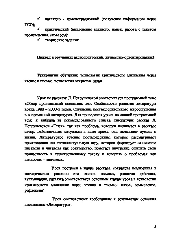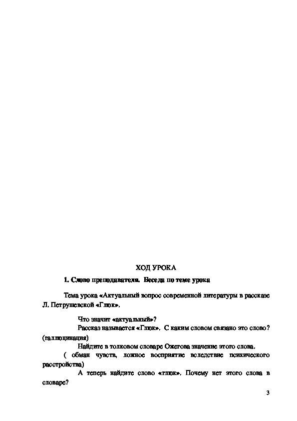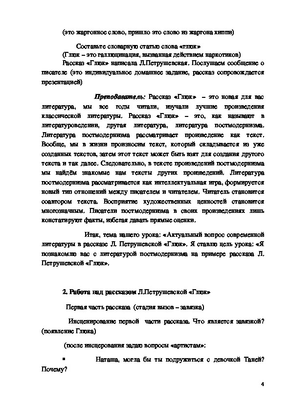 1 познакомить студентов с рассказом Л. Петрушевской «Глюк»