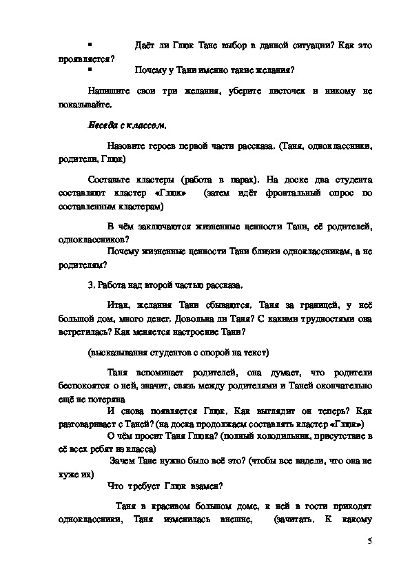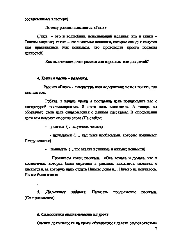 2. Работа над рассказом Л.Петрушевской «Глюк»