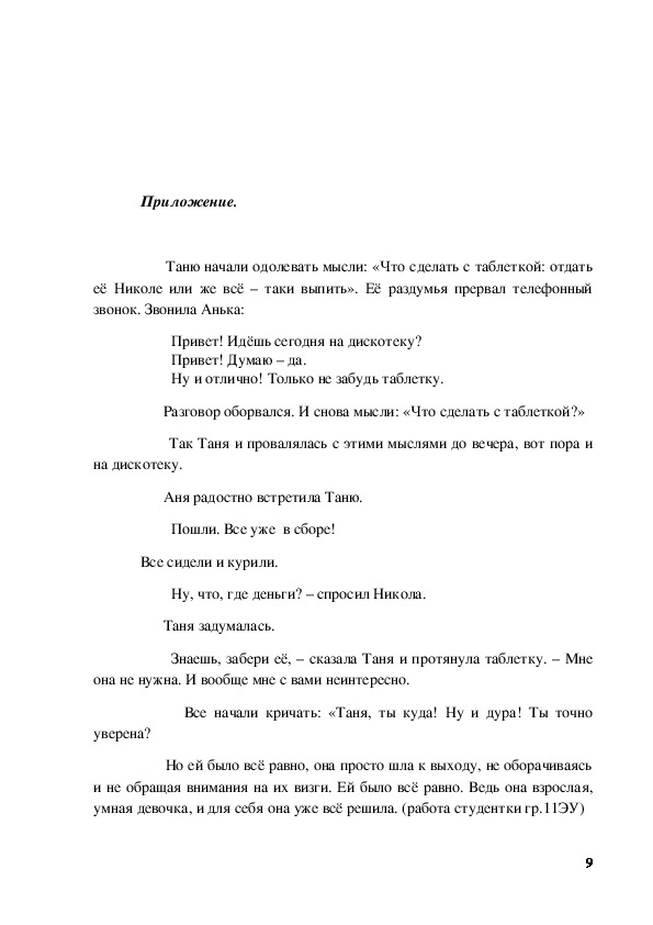 умная девочка, и для себя она уже всё решила. (работа студентки гр.11ЭУ)