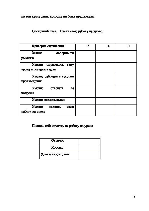 Оценку деятельности на уроке обучающиеся давали самостоятельно
