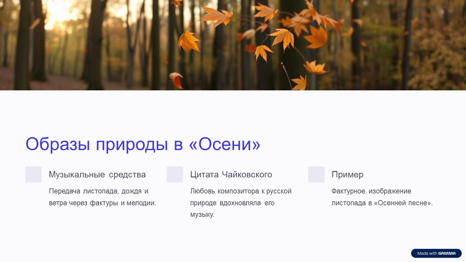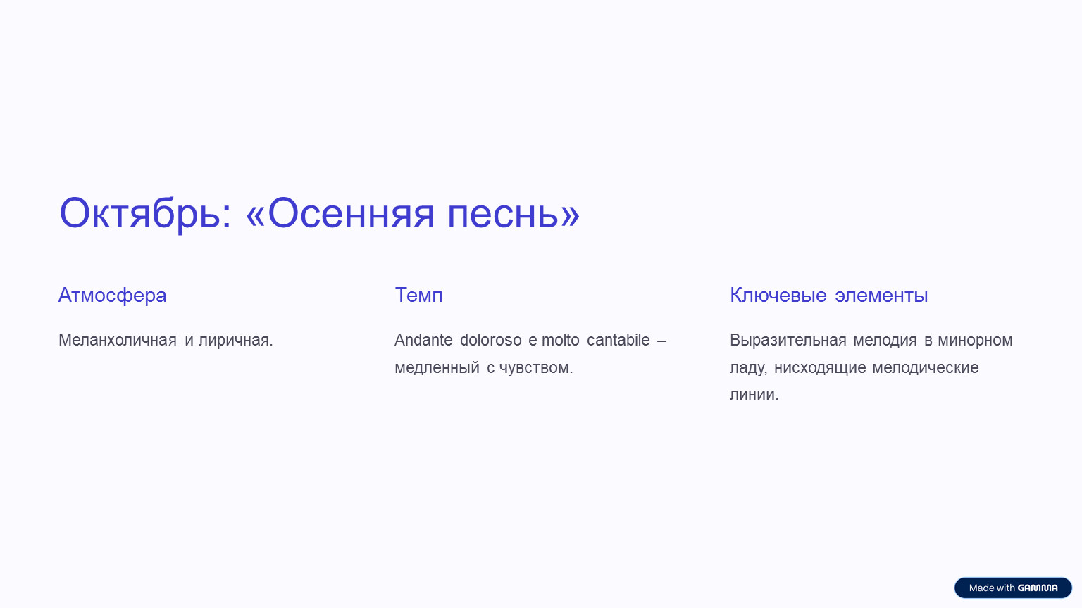 Исследуем осенние пьесы из знаменитого цикла Петра Ильича Чайковского. Погрузимся в музыкальный мир осени и её настроения.