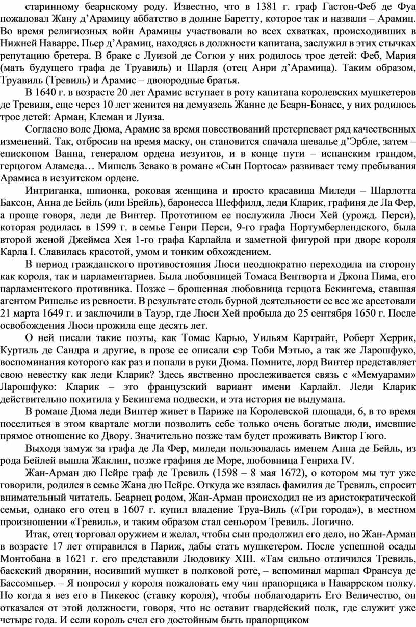 Самый родовитый из прототипов четырех мушкетеров Дюма – это Анри д’Арамиц, который родился около 1620 г.