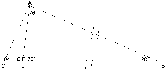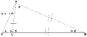 ÐАLВ – внешний угол ∆АСL, следовательно, ÐCAL=b-a. ÐАLС – внешний угол ∆АВL, следовательно, ÐABL=a-b.