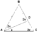 а) По теореме о сумме углов треугольника ABD, Ð ADB = 180°-4x. ÐADB – внешний угол треугольника ADC, следовательно Ð ADB = 4x. Составив и решив уравнение, найдем, что ÐB = 45°