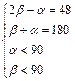 Зная, что ÐВАС=48°, составляем уравнение: 2b-a-48. Зная, что ÐАLС и ÐАLВ смежные, составляем уравнение: b+a=180