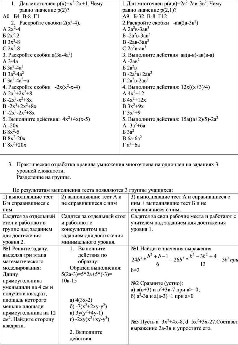 обучающая – отработка правила умножения многочлена на одночлен и приведения многочлена к стандартному виду;